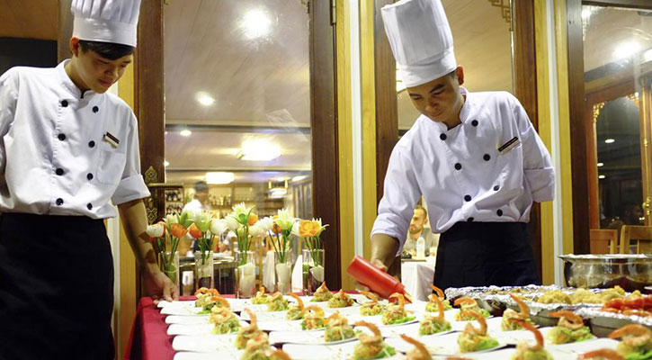 19.30 – 23.00: Dinner – Deluxe Vietnamese and International BBQ Set Menu Dinner is served on board.