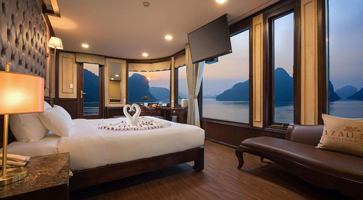 Departing from the Got ferry in Hai Phong City, Azalea Cruise offers accommodations with an itinerary cruising the untouched areas of the Lan Ha Bay and Ha Long Bay. Free WiFi access is available.