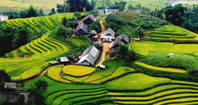 Ma Tra village is home to the H’mong and Red Zao. Tourists can enjoy the panorama view of the whole valley, stretching for about 12 Km with some low hills in the middle to divide the valley into two parts.