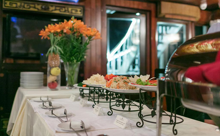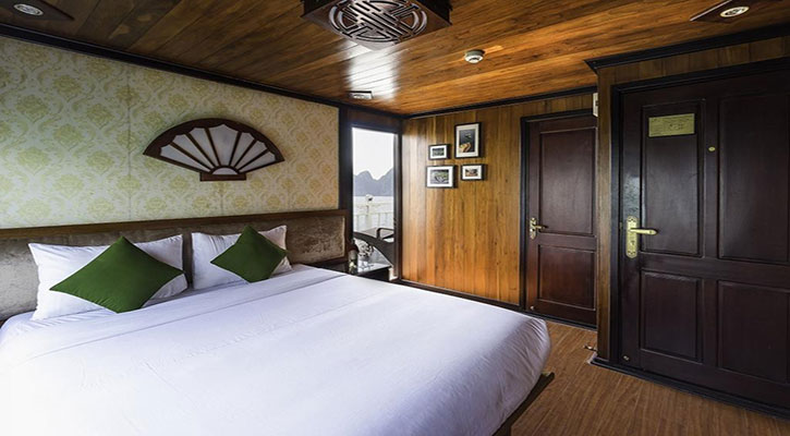 Each vessel has got a stylish restaurant and bar, providing exclusive dining experience on the third deck with impressive 3-star service of Halong luxury cruises. The top deck serves as a perfect place to enjoy lingering in the sunshine and discovering the splendid beauty of Halong bay – the most stunning bay in Vietnam with a 360 view, thus promising unforgettable and thoroughly relaxing moments during your Halong cruise tours.