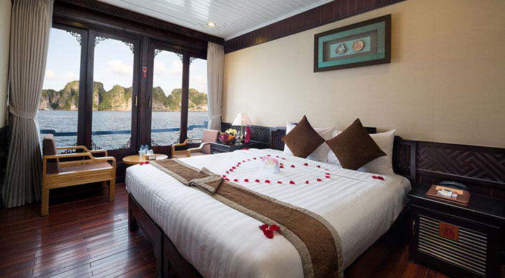 There are various evening activities you could choose to attend, including Leisure time to enjoy a chat around the bar, watching movies and many sort of Vietnam cultural films, relaxing and spending a romantic night on Image Halong Cruise’s music, playing cards, chess are available, reading magazines in room and dining room.
