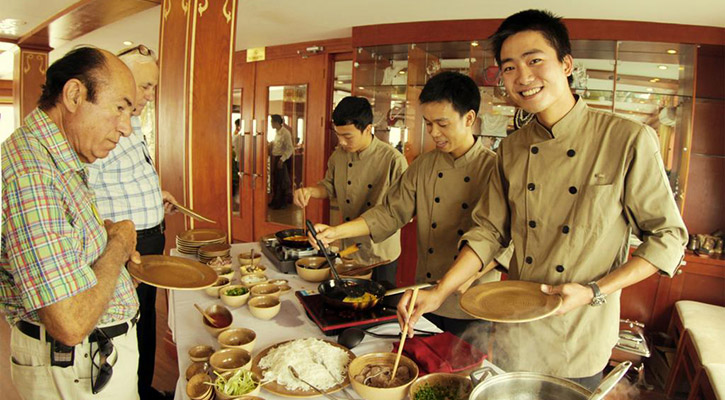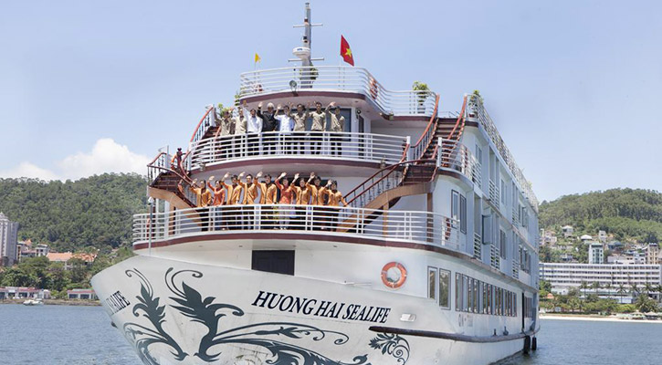 Huong Hai Sealife Cruise is located an hour’s drive from Quang Ninh City. It offers complimentary activities on board such as squid fishing, movie night and tai chi.