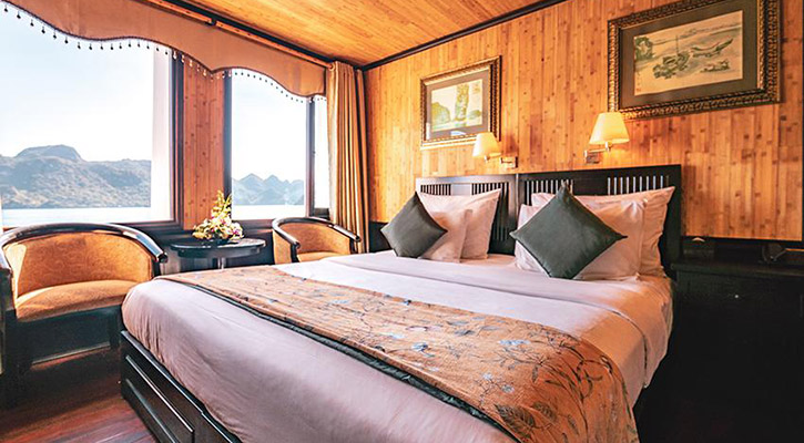 Cruise Halong’s Jasmine junk is a good choice for you when you want to have a party on the sundeck, enjoy an intimate candle-lit dinner in the Jasmine restaurant, or just find a quiet nook or cranny to relax.