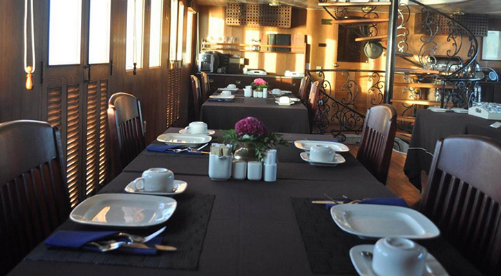 Dining Room & Bar On the L'Amant cruise, the restaurant offers both Western and Asian cuisine. Breakfast and lunch are served in the form of buffets. For dinner, tourists will have a meal with an a la carte menu. In particular, vegetarian dishes are always available for people who need them. The nearby bar will satisfy you with a rich wine list.