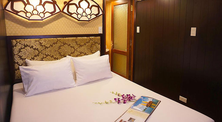 Built in 2009 and newly upgraded in 2014 in traditional Vietnamese style, Oriental Sails featuring 18 deluxe cabins of ancient style in harmony with modern facilities bring you the utmost comfort. The junk boat features rattan & wooden furnishings, magnificent views from the window, and a panoramic sundeck allowing different activities surrounding by beautiful Halong Bay scene.