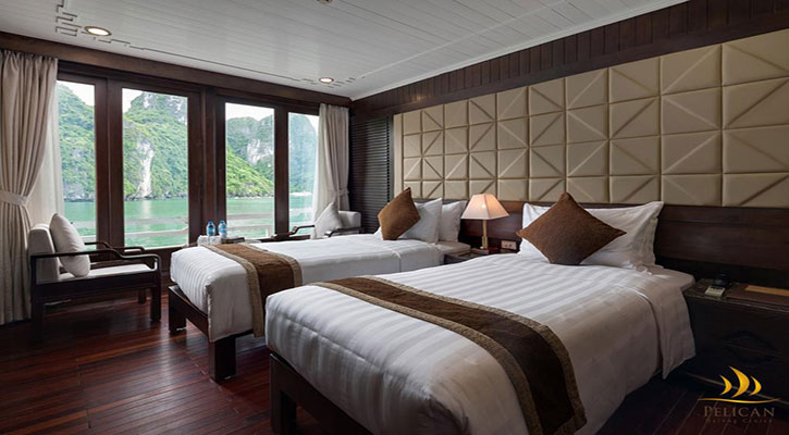 Pelican Cruise is a new cruising art in Halong Bay. Pelican Luxury Cruise was founded 2011, which offers a pioneering new generation of vessels with both uncompromising quality and safety standards. Offering a 4-stars cruise experience in Halong Bay, our fleet’s outstanding settings will be yours for the whole length of staying on board. Our friendly and well trained crew will work at their best to make an unforgetable and experience.