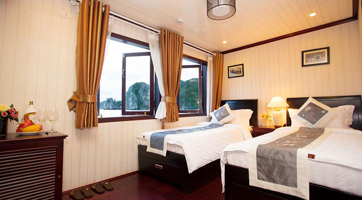 Our 3 star services are served with affordable price and comfortable grand style. our boats are designated to fit the international standards with the inspiration of traditional Vietnamese Junk style making the boats in harmony of Western and Vietnamese culture. Board Halong Phenix Luxury Cruiser at Tuan Chau International Marina, a 3-hour, 30-minute drive from Hanoi.