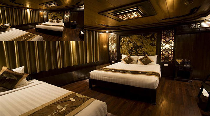 With 11 luxury cabins, Renea Junk ensures intimate privacy and comfort for all guests. Welcome to Halong Lafairy Sails to have a fantastic Halong tour on luxury and elegant Halong Renea Junk. The warm hospitality with superior service bring the best memories about Halong Discovery cruising blue water of Halong Bay. Locating in Halong Bay, Halong Renea Junk offers a splendid, sweeping view from its rooftop swimming pool and panoramic fitness centre.