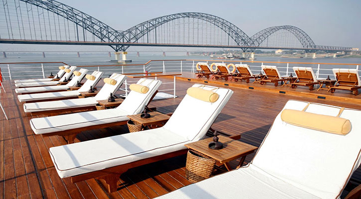 Sailing on a Pandaw is essentially an outdoor experience. Whilst the staterooms are very comfortable and roomy, passengers prefer to spend their time sitting outside, on the promenade decks or on the vast observation deck above. Unlike other cruise ships, every window (except port holes on the lower deck) can open. When sailing our passengers sit on deck and become absorbed by great panoramas as they unfold around them. Spellbound, one cannot help but to meditate upon the unceasing human and wildlife activity of these teaming water worlds.