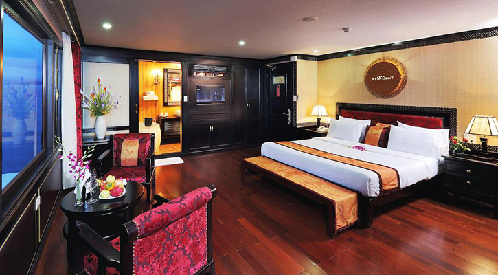 Offering views of Ha Long Bay, air-conditioned rooms come with wooden flooring, a wardrobe, mini-bar and seating area. Each room has an private bathroom that includes a hairdryer, bathrobes, shower and free toiletries.