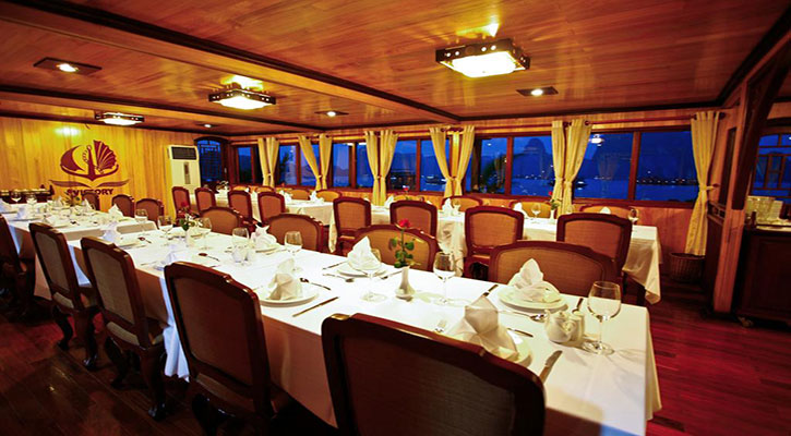 Offering modern rooms with views of Halong Bay, Victory Cruise serves full board meals of Vietnamese and international delights. Guests can enjoy recreational activities, cooking shows and visits to attractions, as well as a free early morning tai chi class.